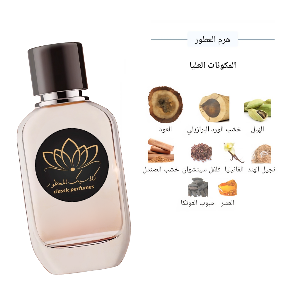 باختصار: هو عطر عود مصقول، توابلي، وكريمي، يمثل الأناقة الفاخرة والهادئة.